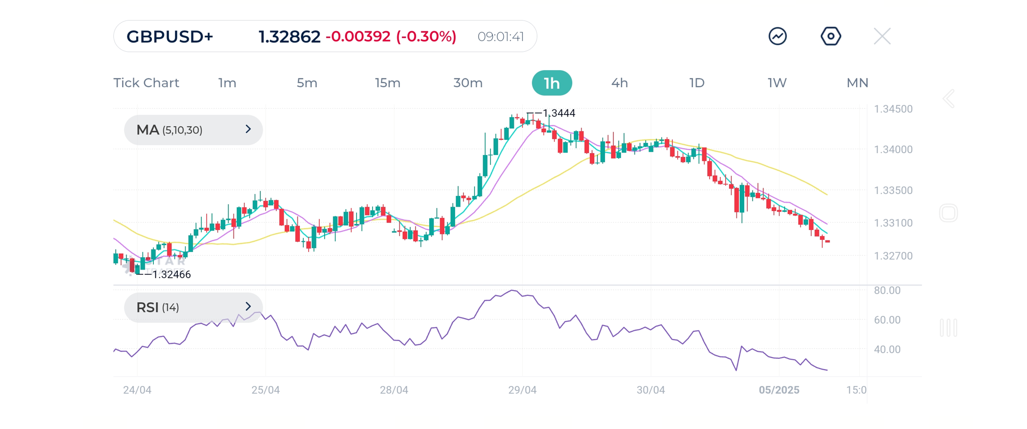 The overall bias is Bearish. A short-term pullback could occur, but as long as price remains below 1.1350, sellers are in control. Watch for rejection signals at the 10- or 30-MA levels.