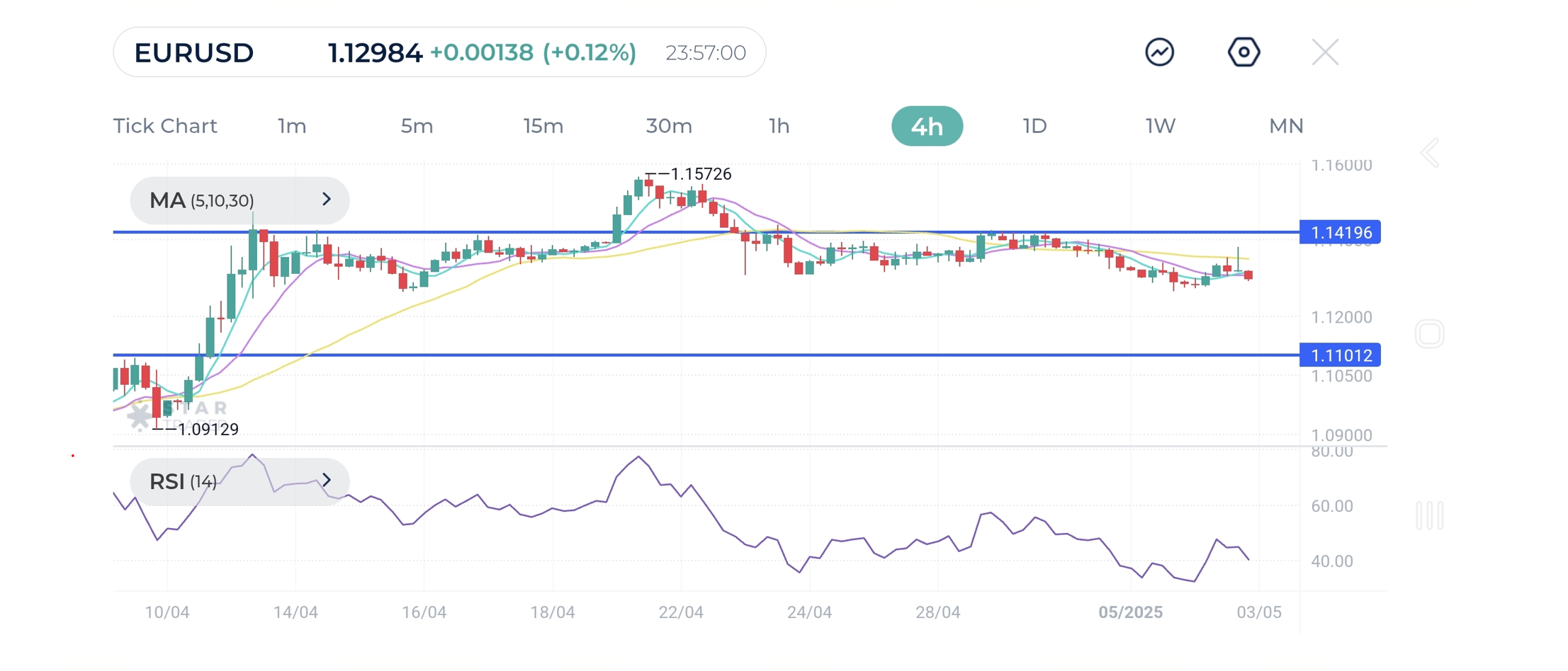 The recent shift in momentum began after EUR/USD failed to clear the 1.1420 resistance. This led to a downside break below both a key support trendline and the 30-SMA, signaling that bears had taken over. However, for a new downtrend to be confirmed, the pair must begin forming lower highs and lower lows. So far, the pair has printed a lower high, but the next step is a break below 1.1240 to establish a lower low and confirm a deeper correction towards 1.1100. Failure to do so may result in a bounce back toward 1.1550, especially if buyers step in near current levels. As long as the price remains below the 4-hour 30-SMA and 1.1420, the bearish setup stays in play.