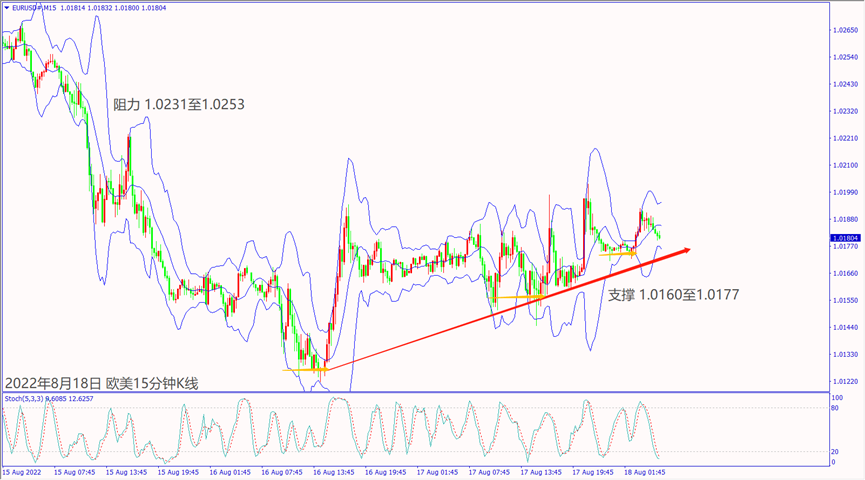 昨天(17日)新西兰联储宣布加息50个基点,一度带动纽美急涨约50个点。英国公布CPI和零售物价指数利好,一度推升镑美冲高至1.2142。欧元区公布第二季度GDP数据不佳,造成欧美和镑美皆跌逾40个点,而澳美和纽美则跌超百点,推升美元指数冲高至106.70附近震荡,带动美日和美加涨逾百点。周四(18日)清晨美联储会议纪要表示,美联储官员认为某个时间点需要放缓加息利淡美元指数反转下跌约45个点,推升欧美和镑美涨超40个点。