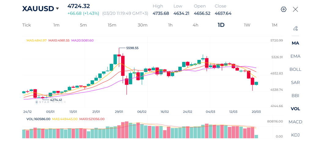 Nguyên nhân chính của đà giảm này là sức mạnh của đồng USD, khi phần lớn nhu cầu trú ẩn đã chuyển sang đồng tiền này. Khi kỳ vọng lạm phát tăng do giá dầu leo thang, thị trường bắt đầu định giá ít lần cắt giảm lãi suất hơn, khiến lợi suất thực tăng và làm giảm sức hấp dẫn của các tài sản không sinh lợi như vàng.